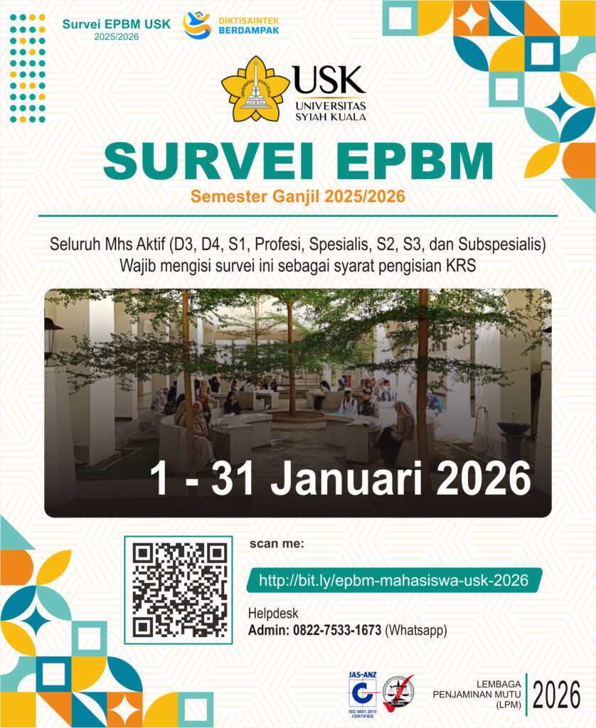 Survei dapat diikuti dengan mengakses link: http://bit.ly/epbm-mahasiswa-usk-2026